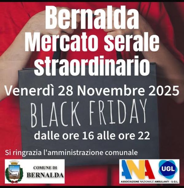 “È indetto il mercato serale straordinario Venerdì, 28 Novembre 2025, dalle 16:00 alle 22:00″.