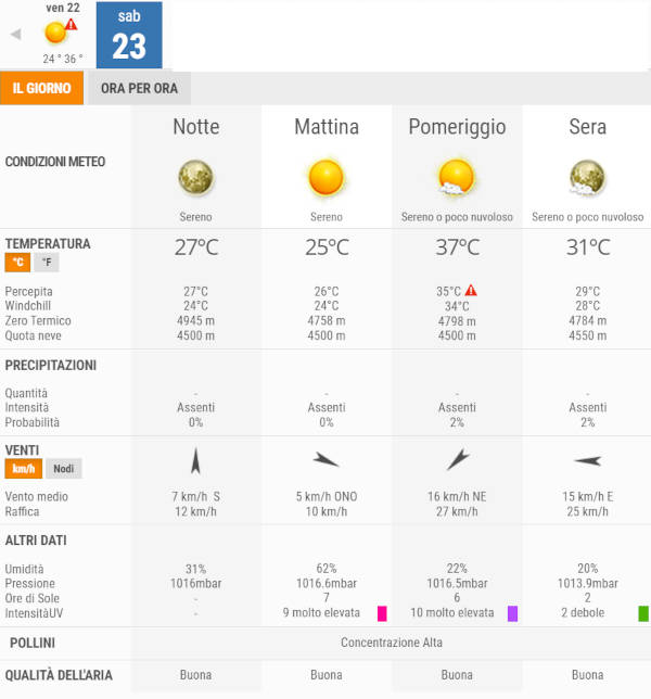 La temperatura massima registrata pare che sarà di 37°C, la minima di 25°C.