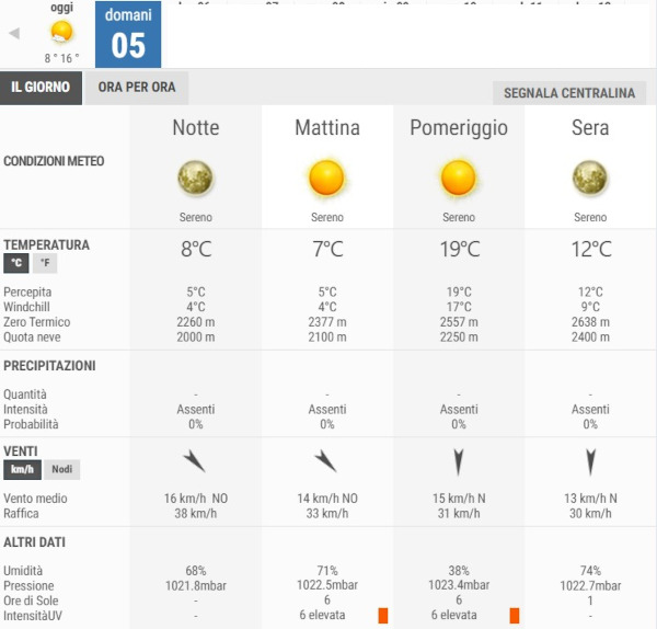 La temperatura massima registrata pare che sarà di 19°C, la minima di 7°C.
