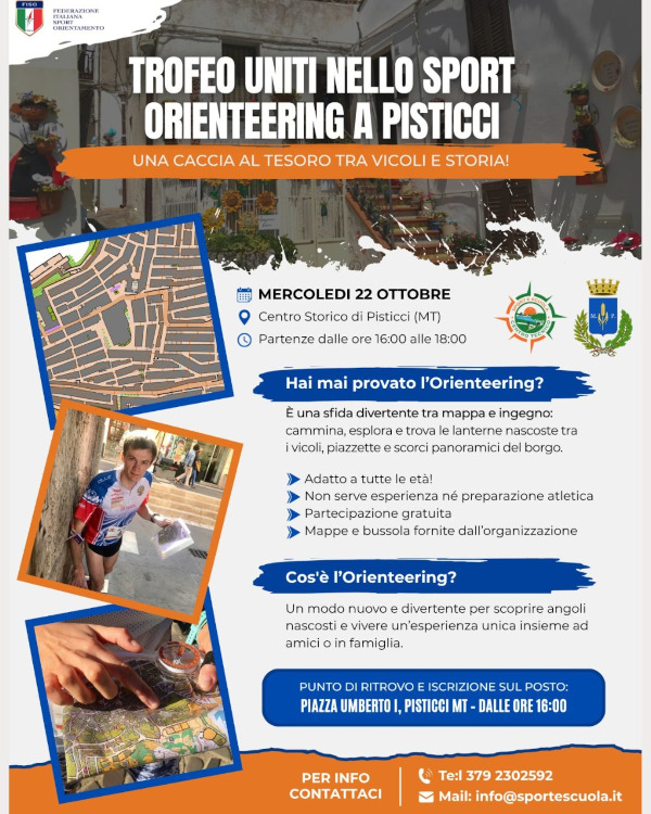 Pisticci si prepara a ospitare il ๐—ง๐—ฟ๐—ผ๐—ณ๐—ฒ๐—ผ “๐—จ๐—ป๐—ถ๐˜๐—ถ ๐—ป๐—ฒ๐—น๐—น๐—ผ ๐—ฆ๐—ฝ๐—ผ๐—ฟ๐˜”, una giornata di ๐—ข๐—ฟ๐—ถ๐—ฒ๐—ป๐˜๐—ฒ๐—ฒ๐—ฟ๐—ถ๐—ป๐—ด che unisce ๐—ฎ๐˜ƒ๐˜ƒ๐—ฒ๐—ป๐˜๐˜‚๐—ฟ๐—ฎ, ๐—ฑ๐—ถ๐˜ƒ๐—ฒ๐—ฟ๐˜๐—ถ๐—บ๐—ฒ๐—ป๐˜๐—ผ ๐—ฒ ๐˜€๐—ฐ๐—ผ๐—ฝ๐—ฒ๐—ฟ๐˜๐—ฎ tra i vicoli del centro storico.