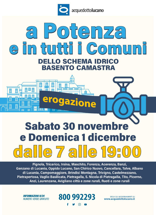 Terminata questa fase entro i primi giorni della prossima settimana, si verificherà la possibilità di estendere le ore di erogazione in tutti gli abitati dello schema idrico.