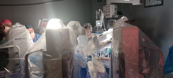 Alla consolle del robot ha operato Pietro Mastrangelo, coadiuvato al tavolo operatorio dal Italo Veneziano e dagli strumentisti Lorenzo Martinelli e Anna Risimini.