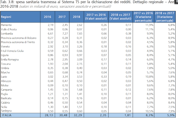 Di seguito la tabella con gli ultimi dati sulla spesa sanitaria privata.