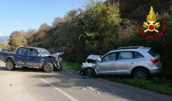 I Vigili del Fuoco del distaccamento di Villa D’Agri (PZ) si sono recati sul posto su richiesta del 118, dove hanno trovato due autovetture coinvolte in uno scontro frontale (Ford Ranger – Audi Q5).