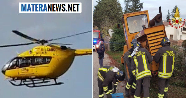 I Vigili del fuoco, hanno provveduto alla messa in sicurezza della macchina operatrice, mentre l’uomo stabilizzato da personale sanitario è stato trasportato in eliambulanza presso l’ospedale San Carlo di Potenza.