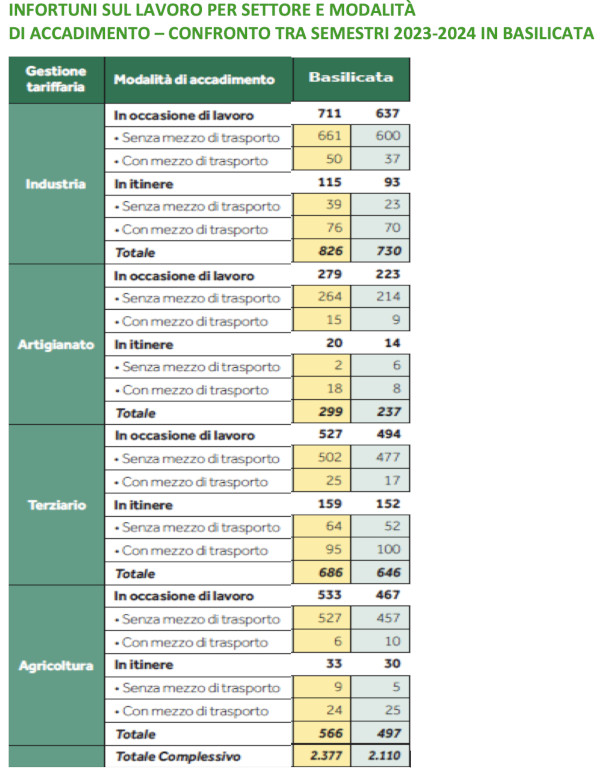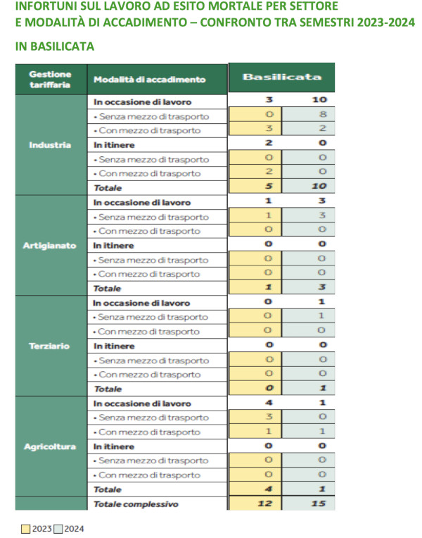 A valle della convocazione del Comitato Regionale di Coordinamento delle attività di prevenzione e vigilanza in materia di salute e sicurezza sul lavoro ex art. 7 D.Lgs. n. 81/2008 tenutosi questa mattina, che ha inteso definire le Linee strategiche per attività di prevenzione e vigilanza nei comparti lavorativi a rischio più elevato nella Regione Basilicata in collaborazione con Istituzioni, parti datoriali e sindacali, appare utile accendere un faro sui dati in Basilicata che riguardano la salute e la sicurezza sul lavoro come emergono, territorializzandoli, dal Report di analisi semestrale infortuni e malattie professionali realizzato dalla Cisl nazionale su dati tratti dal sistema Open Data INAIL e riferito al secondo semestre del 2024.