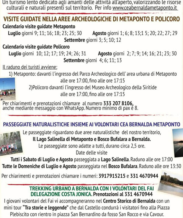 - Passeggiate naturalistiche insieme ai volontari Cea Bernalda Metaponto,