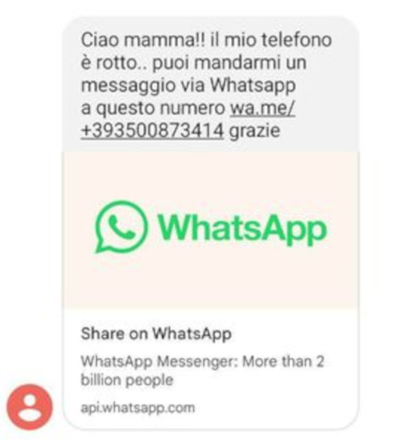 “Ciao mamma, il mio cellulare è rotto: questo è il mio nuovo numero. Mi mandi un messaggio su WhatsApp? Grazie”: questo il contenuto del messaggio che nasconde insidie.