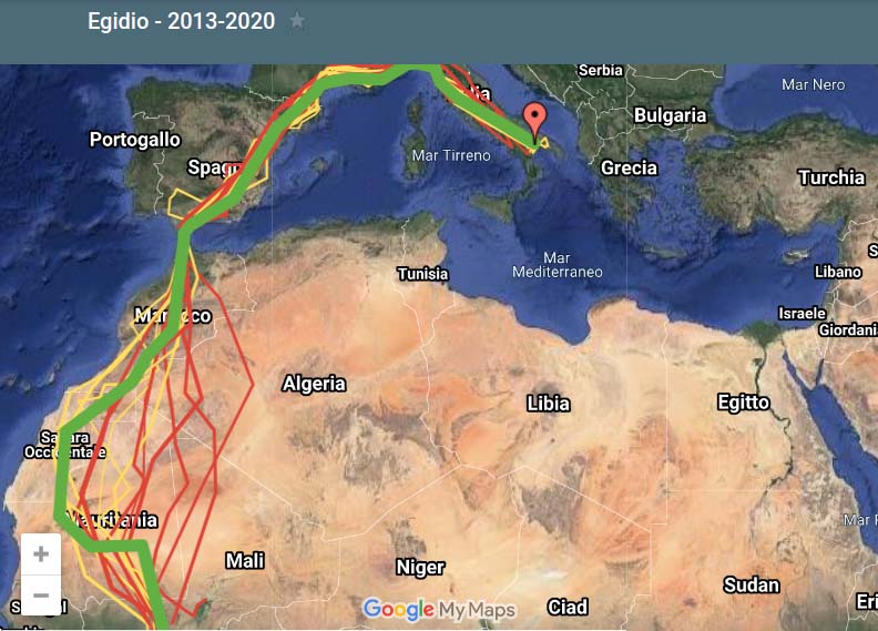 Ed ecco la foto della famosa aquila e del tragitto percorso ogni anno dalla Basilicata al Mali: