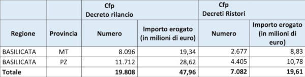 Comunicati i dati dei contributi a fondo perduto, previsti dal Decreto Rilancio e dai Decreti Ristori, erogati in Basilicata.