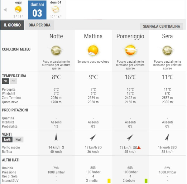La temperatura massima registrata pare che sarà di 16°C, la minima di 8°C.