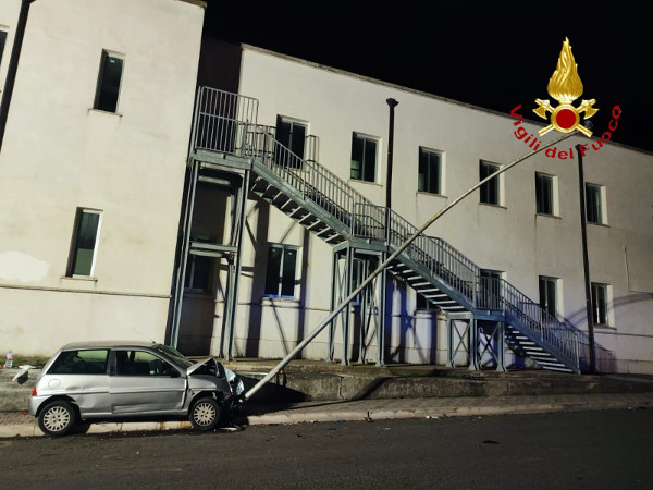 Sul posto si è constatato che a seguito dell’impatto di un’autovettura, modello Lancia Y di colore grigio, un palo della pubblica illuminazione è stato abbattuto.