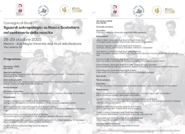 E’ il titolo del Convegno di studi che si terrà a Matera, nell’Aula Magna dell’Università degli studi della Basilicata, martedì 28 e mercoledì 29 p.v. nell’ambito delle attività scientifico-culturali che stanno caratterizzando l’accurato e rigoroso percorso triennale (2023-2025) del Comitato Nazionale per le celebrazioni del centenario della nascita di Rocco Scotellaro.