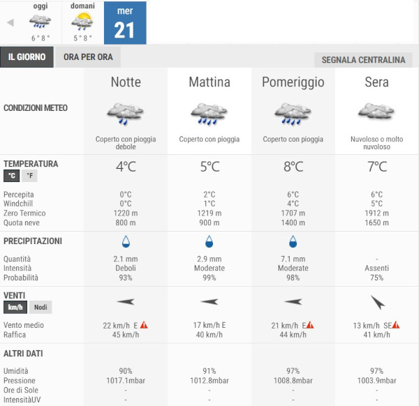 La temperatura massima registrata pare che sarà di 8°C, la minima di 5°C.