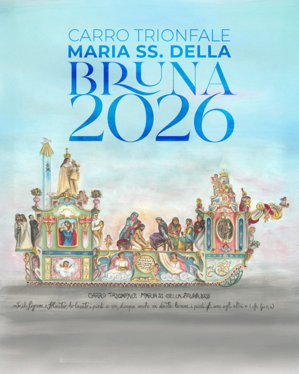 Oggi nella Basilica Cattedrale di Matera, è stato svelato il 𝐛𝐨𝐳𝐳𝐞𝐭𝐭𝐨 𝐯𝐢𝐧𝐜𝐢𝐭𝐨𝐫𝐞 del bando di concorso per la costruzione del Carro Trionfale 2026, realizzato dall’artista materana 𝐅𝐫𝐚𝐧𝐜𝐞𝐬𝐜𝐚 𝐂𝐚𝐬𝐜𝐢𝐨𝐧𝐞 e dedicato al tema evangelico “𝐥𝐨, 𝐢𝐥 𝐒𝐢𝐠𝐧𝐨𝐫𝐞 𝐞 𝐢𝐥 𝐌𝐚𝐞𝐬𝐭𝐫𝐨, 𝐡𝐨 𝐥𝐚𝐯𝐚𝐭𝐨 𝐢 𝐩𝐢𝐞𝐝𝐢 𝐚 𝐯𝐨𝐢, 𝐝𝐮𝐧𝐪𝐮𝐞 𝐚𝐧𝐜𝐡𝐞 𝐯𝐨𝐢 𝐝𝐨𝐯𝐞𝐭𝐞 𝐥𝐚𝐯𝐚𝐫𝐞 𝐢 𝐩𝐢𝐞𝐝𝐢 𝐠𝐥𝐢 𝐮𝐧𝐢 𝐚𝐠𝐥𝐢 𝐚𝐥𝐭𝐫𝐢”.(𝐜𝐟𝐫 𝐆𝐯 13, 14), scelto per la 637esima edizione della Festa della Bruna.