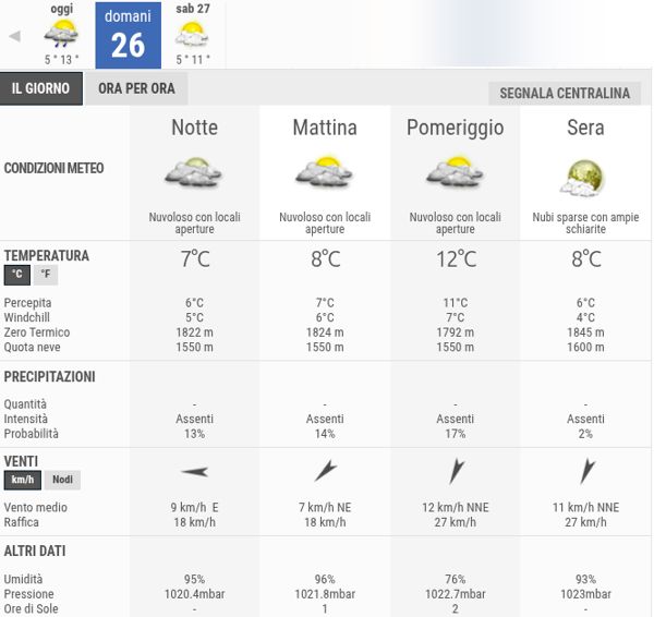 In attesa di ulteriori aggiornamenti, ecco la situazione meteo complessiva con in dettaglio le previsioni per la giornata di domani.