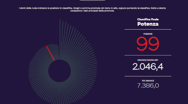 In provincia di Potenza, i reati commessi e denunciati nel 2020 sono stati 7.386: la diminuzione rispetto al 2019 è pari al 5,6 per cento.
