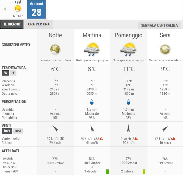La temperatura massima registrata pare che sarà di 11°C, la minima di 6°C.