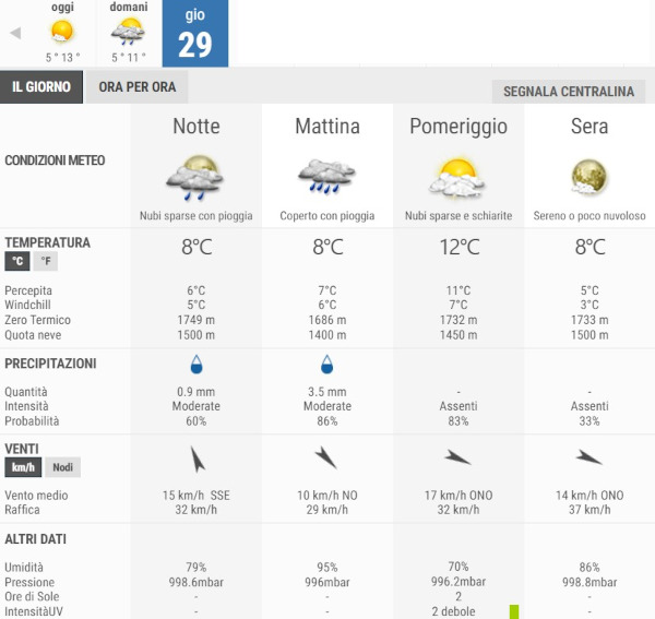 La temperatura massima registrata pare che sarà di 12°C, la minima di 8°C.
