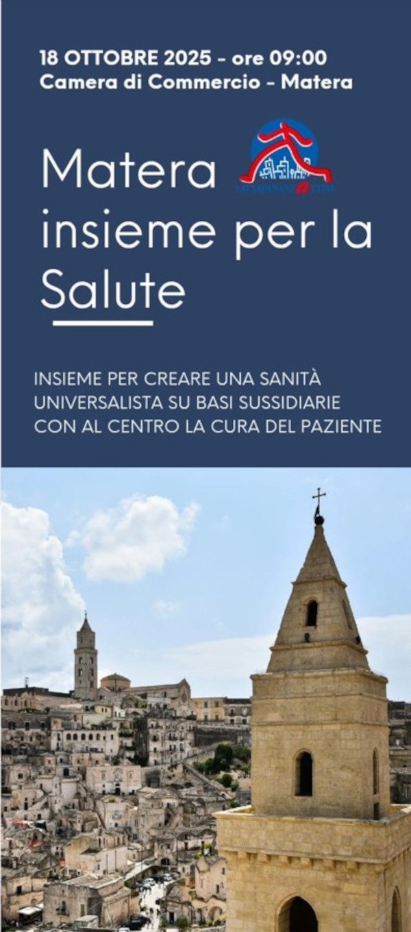 Si svolgerà sabato 18 ottobre il seminario ‘Matera insieme per la salute’ voluto dal coordinamento locale di Cittadinanzattiva Basilicata At Matera con a capo Pasquale Andrisani, sempre molto attento alle dinamiche locali.