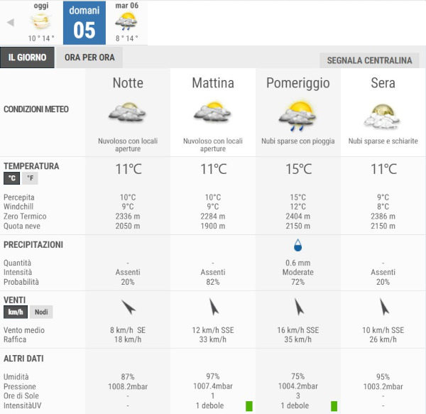 La temperatura massima registrata pare che sarà di 15°C, la minima di 11°C.