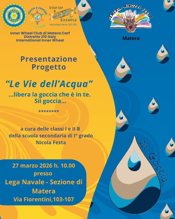 L’acqua come memoria, ingegno e visione del futuro: è questo il cuore del progetto “Le Vie dell’Acqua”, promosso dall’Inner Wheel Club di Matera, che invita a riscoprire antichi sistemi di gestione idrica come modelli di sostenibilità contemporanea.