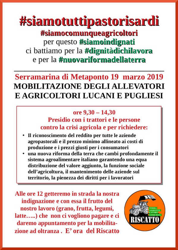 “Siamo tutti pastori sardi” questo il claim della manifestazione che appoggia la protesta lanciata proprio dagli allevatori della Sardegna e che toccherà i vari comuni d’Italia.