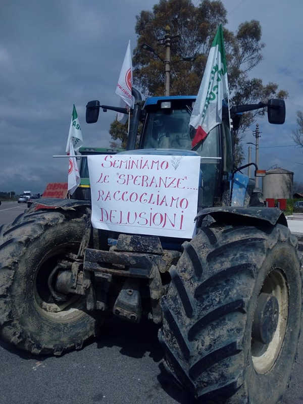 Ieri mattina sulla Strada Statale Metaponto-Matera si è svolta una manifestazione di protesta da parte degli agricoltori e allevatori lucani contro la crisi e per la nuova riforma della terra.