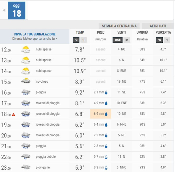 Secondo gli esperti di 3bmeteo infatti, oggi 18 Marzo, avremo oggi cieli in prevalenza poco nuvolosi, ma con nubi in progressivo aumento e deboli piogge dal pomeriggio.