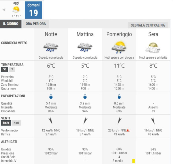 La temperatura massima registrata pare che sarà di 11°C, la minima di 4°C.