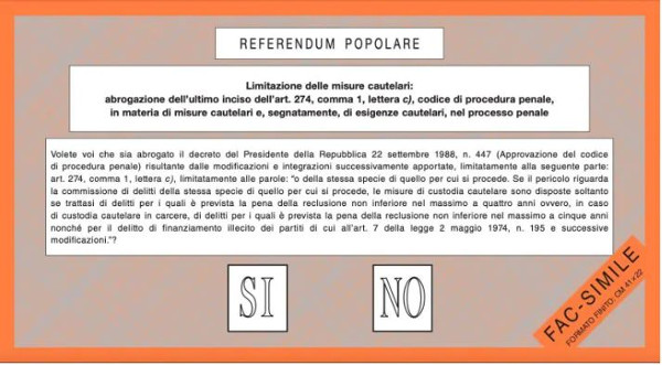 Se vince il sì, in alcuni casi e per reati considerati meno gravi, il pericolo della reiterazione del reato viene eliminato dai motivi per cui può essere richiesta una misura cautelare.