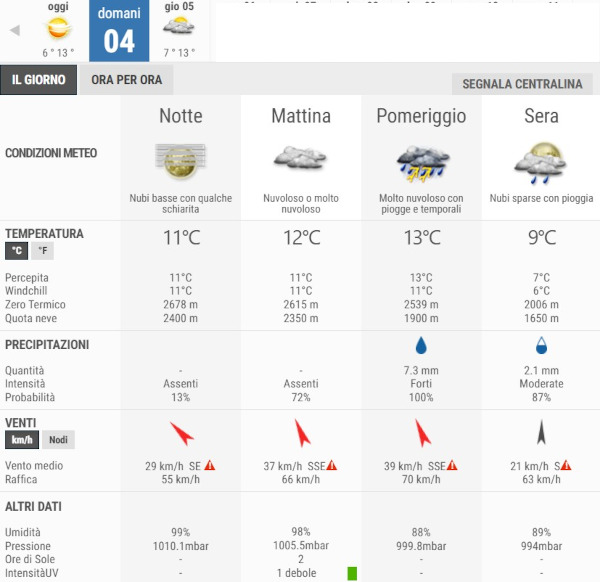 Secondo gli esperti di 3bmeteo, domani Mercoledì 4 Febbario, avremo nubi in progressivo aumento con piogge e rovesci anche a carattere temporalesco nel pomeriggio, in attenuazione dalla sera.