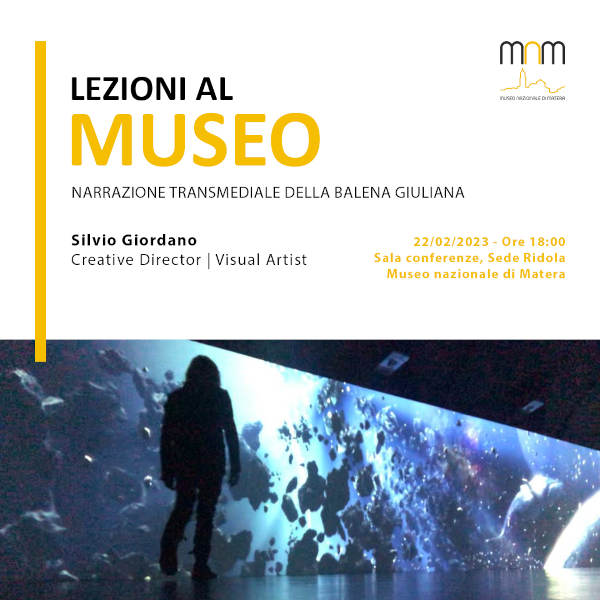 “Narrazione transmediale della Balena Giuliana” è il titolo dell’incontro in programma al Museo Ridola di Matera mercoledì 22 febbraio alle 18:00 nell’ambito delle “Lezioni al Museo”.