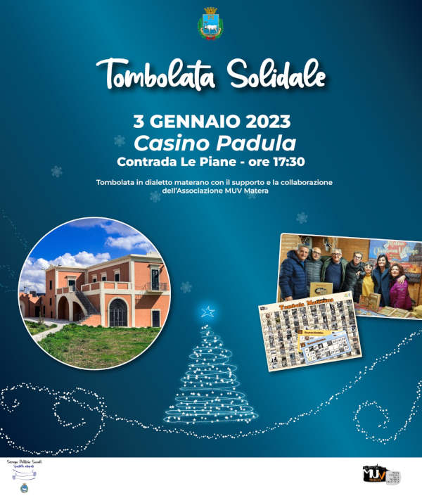 E’ questo lo scopo dell’iniziativa, organizzata dall’Amministrazione comunale di Matera per il prossimo 3 gennaio 2023, presso Casino Padula a partire dalle ore 17.30.