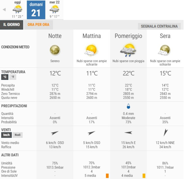 La temperatura massima registrata pare che sarà di 22°C, la minima di 11°C.