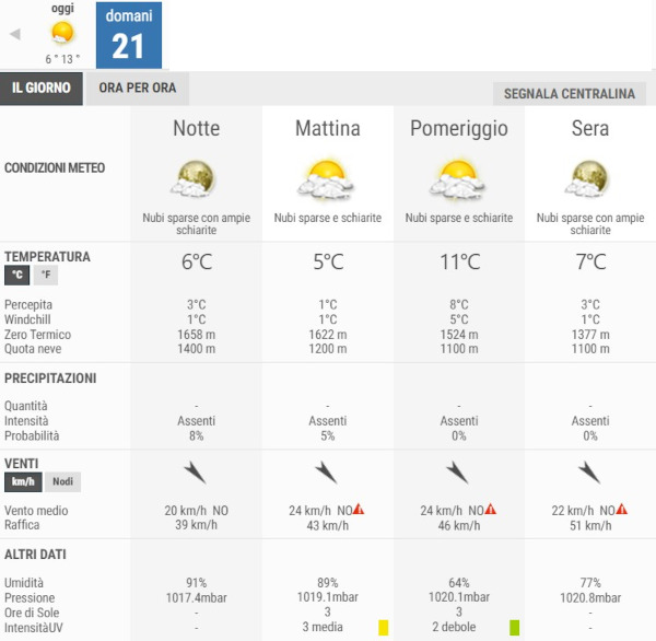 La temperatura massima registrata pare che sarà di 12°C, la minima di 6°C.