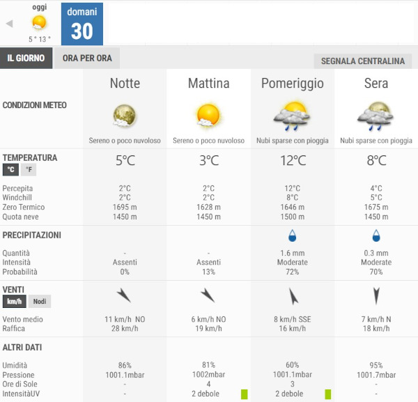 La temperatura massima registrata pare che sarà di 12°C, la minima di 3°C.