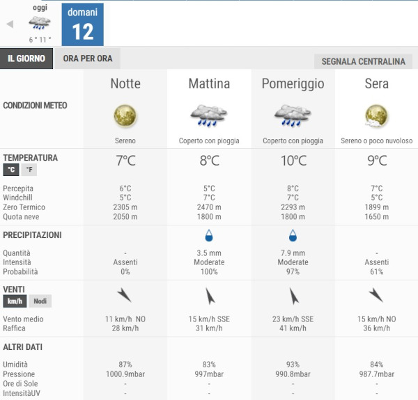 La temperatura massima registrata pare che sarà di 10°C, la minima di 7°C.