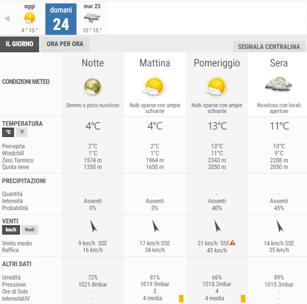 La temperatura massima registrata pare che sarà di 13°C, la minima di 4°C.