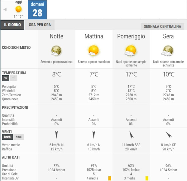 La temperatura massima registrata pare che sarà di 17°C, la minima di 7°C.