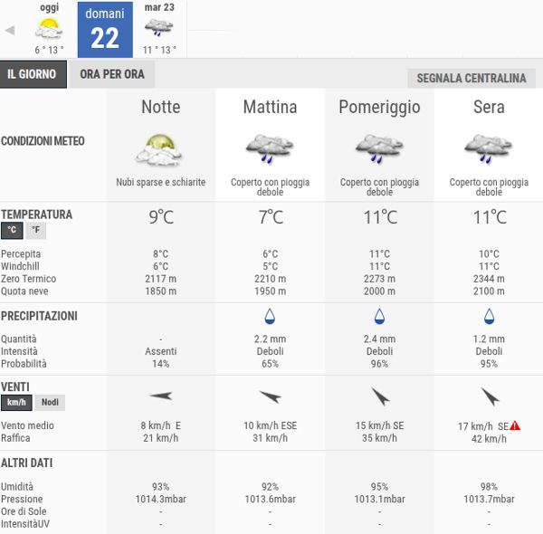 La temperatura massima registrata pare che sarà di 13°C, la minima di 11°C.