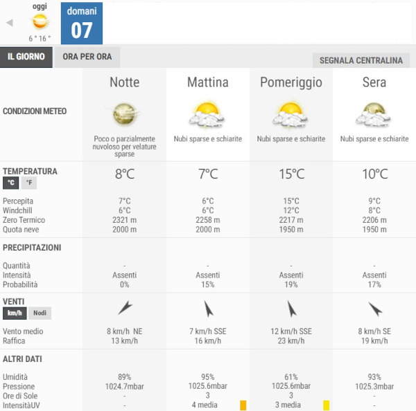 La temperatura massima registrata pare che sarà di 15°C, la minima di 7°C.