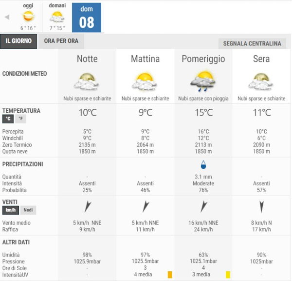 La temperatura massima registrata pare che sarà di 15°C, la minima di 9°C.