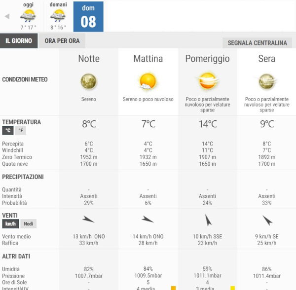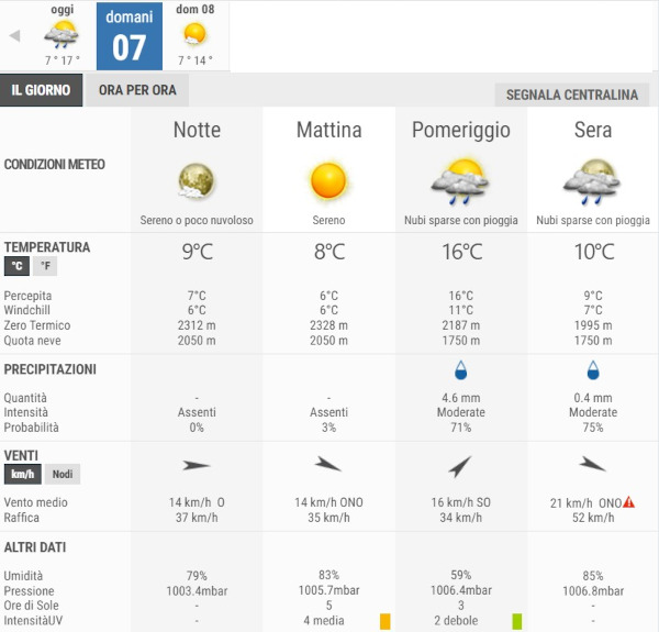 La temperatura massima registrata pare che sarà di 16°C, la minima di 8°C.