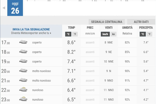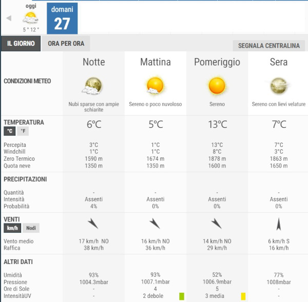 La temperatura massima registrata pare che sarà di 12°C, la minima di 2°C.