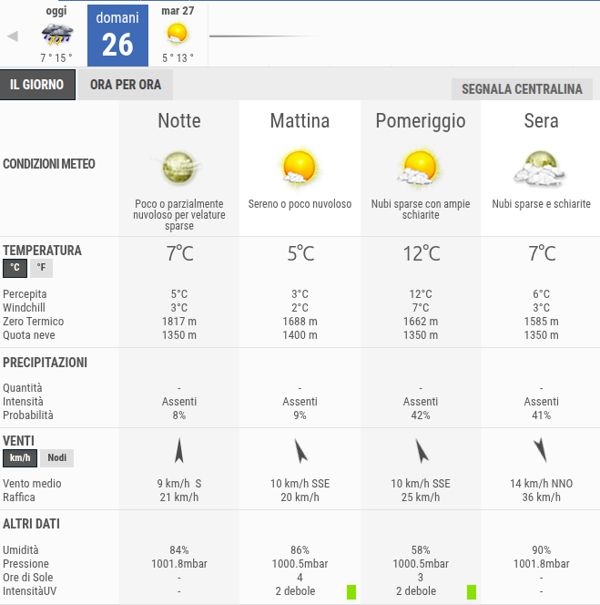 La temperatura massima registrata pare che sarà di 12°C, la minima di 5°C.
