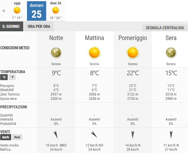 La temperatura massima registrata pare che sarà di 24°C, la minima di 10°C.