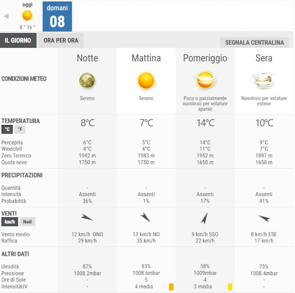 La temperatura massima registrata pare che sarà di 16°C, la minima di 8°C.