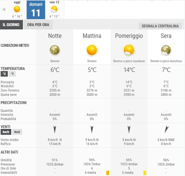 La temperatura massima registrata pare che sarà di 13°C, la minima di 6°C.