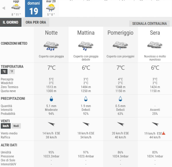 La temperatura massima registrata pare che sarà di 8°C, la minima di 5°C.